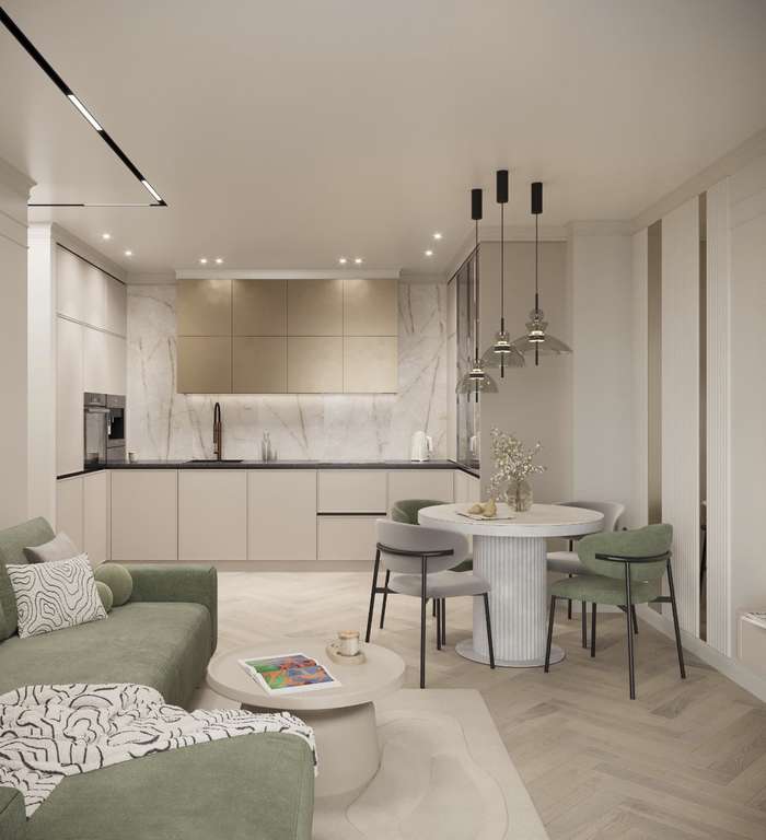 Простор: Несколько спален и большая гостиная (или объединенная кухня-гостиная) создают ощущение свободы и уюта. Комнаты спроектированы так, чтобы обеспечить максимальную функциональность и комфорт для каждого члена семьи.