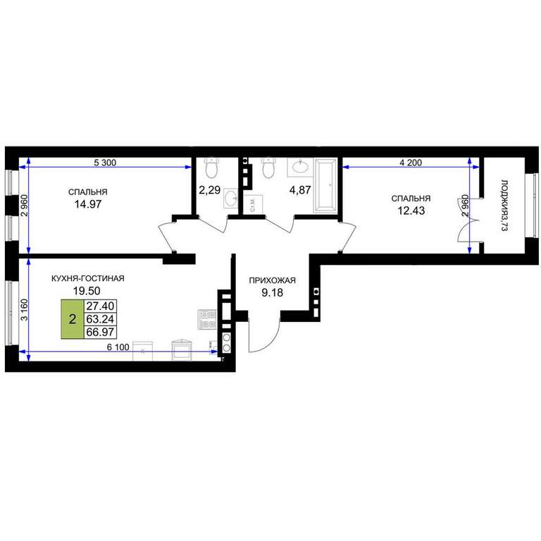 Продается 2-комн. квартира, площадью 66.97 м2 в монолитно-кирпичной новостройке. Возможен вариант покупки с использованием ипотечных средств, есть рассрочка, возможна покупка с использованием материнского капитала, есть военная ипотека.