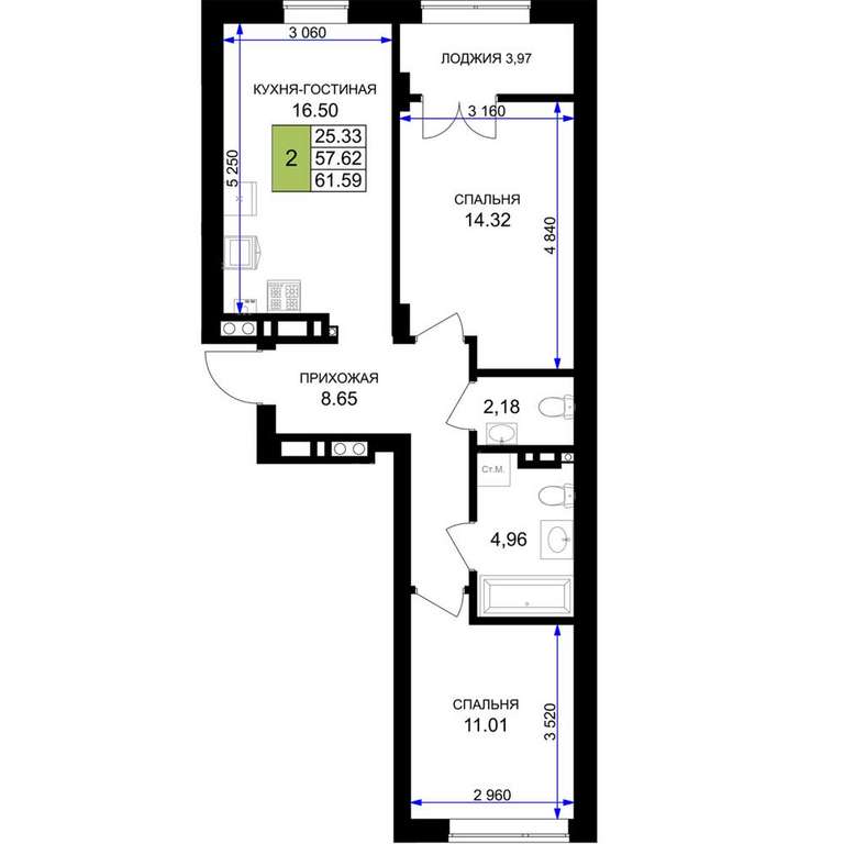 Продается 2-комн. квартира, площадью 61.59 м2 в монолитно-кирпичной новостройке. Возможен вариант покупки с использованием ипотечных средств, есть рассрочка, возможна покупка с использованием материнского капитала, есть военная ипотека.