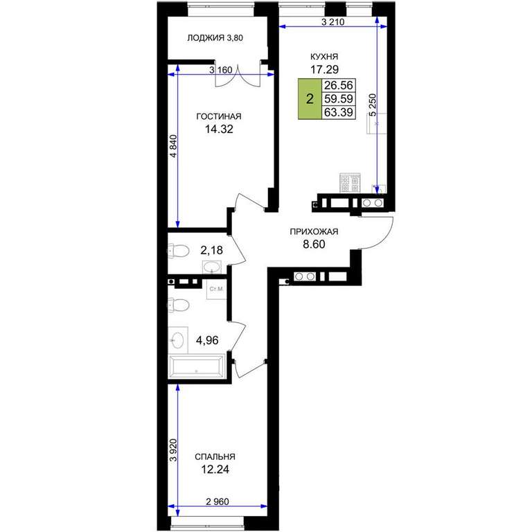 - 63.39 м2