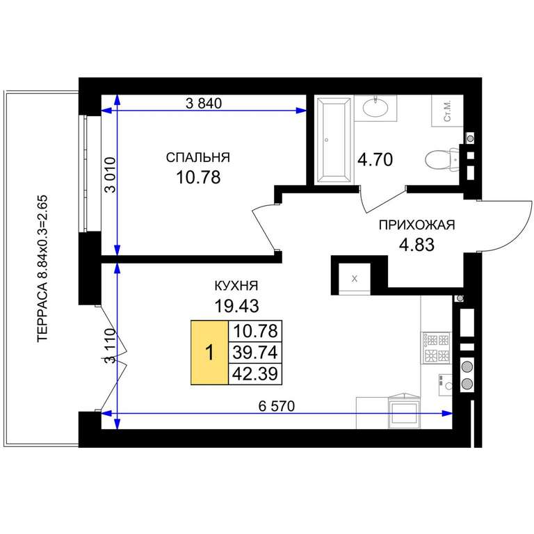 Продается 1-комн. квартира, площадью 42.39 м2 в монолитно-кирпичной новостройке. Возможен вариант покупки с использованием ипотечных средств, есть рассрочка, возможна покупка с использованием материнского капитала, есть военная ипотека.