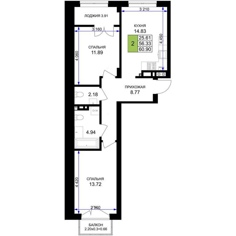 - 60.90 м2