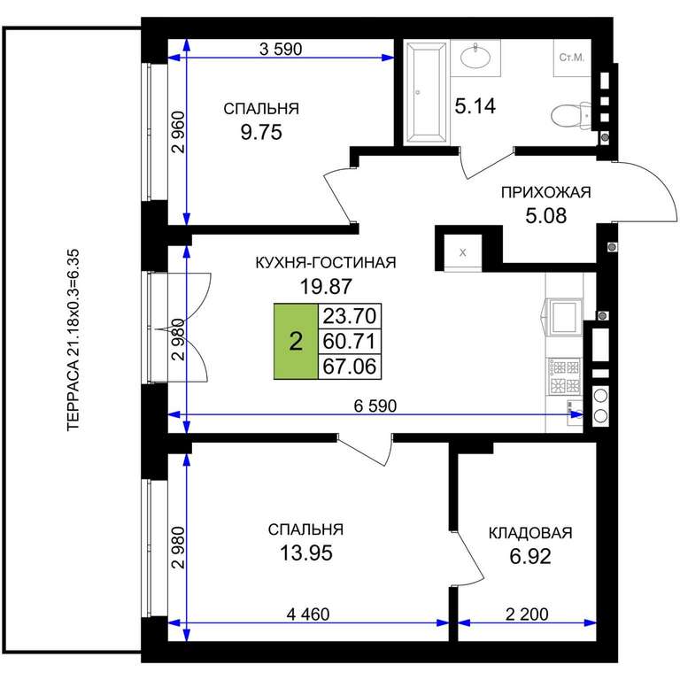 Продается 2-комн. квартира, площадью 67.06 м2 в монолитно-кирпичной новостройке. Возможен вариант покупки с использованием ипотечных средств, есть рассрочка, возможна покупка с использованием материнского капитала, есть военная ипотека.