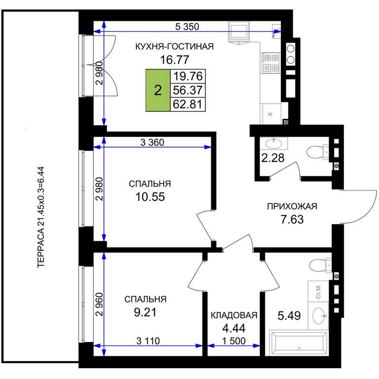 Продается 2-комн. квартира, площадью 62.81 м2 в монолитно-кирпичной новостройке. Возможен вариант покупки с использованием ипотечных средств, есть рассрочка, возможна покупка с использованием материнского капитала, есть военная ипотека.