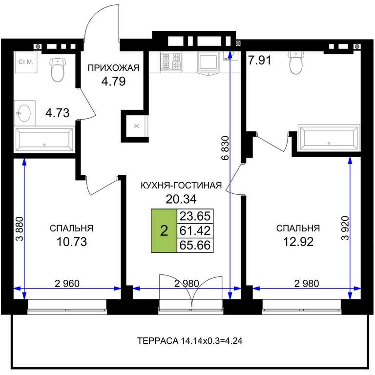 - 65.66 м2