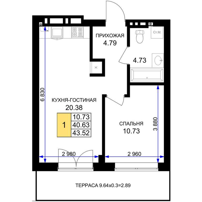 Продается 1-комн. квартира, площадью 43.52 м2 в монолитно-кирпичной новостройке. Возможен вариант покупки с использованием ипотечных средств, есть рассрочка, возможна покупка с использованием материнского капитала, есть военная ипотека.