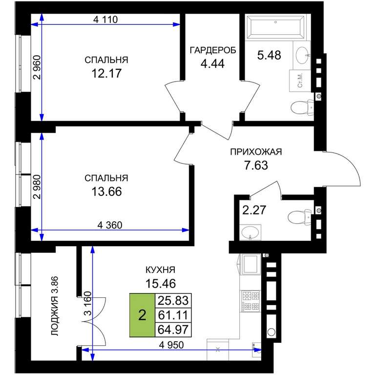 - 64.97 м2