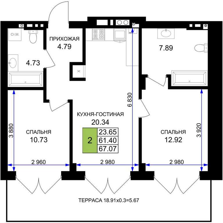 - 67.07 м2
