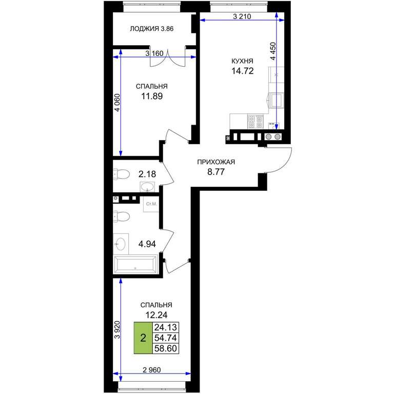 - 58.60 м2