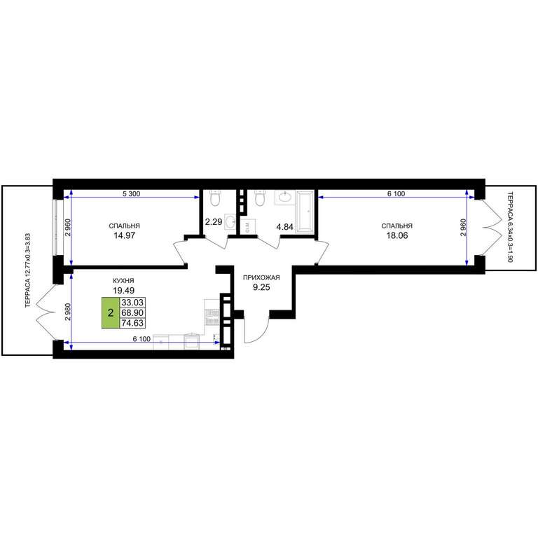 Продается 2-комн. квартира, площадью 74.63 м2 в монолитно-кирпичной новостройке. Возможен вариант покупки с использованием ипотечных средств, есть рассрочка, возможна покупка с использованием материнского капитала, есть военная ипотека.