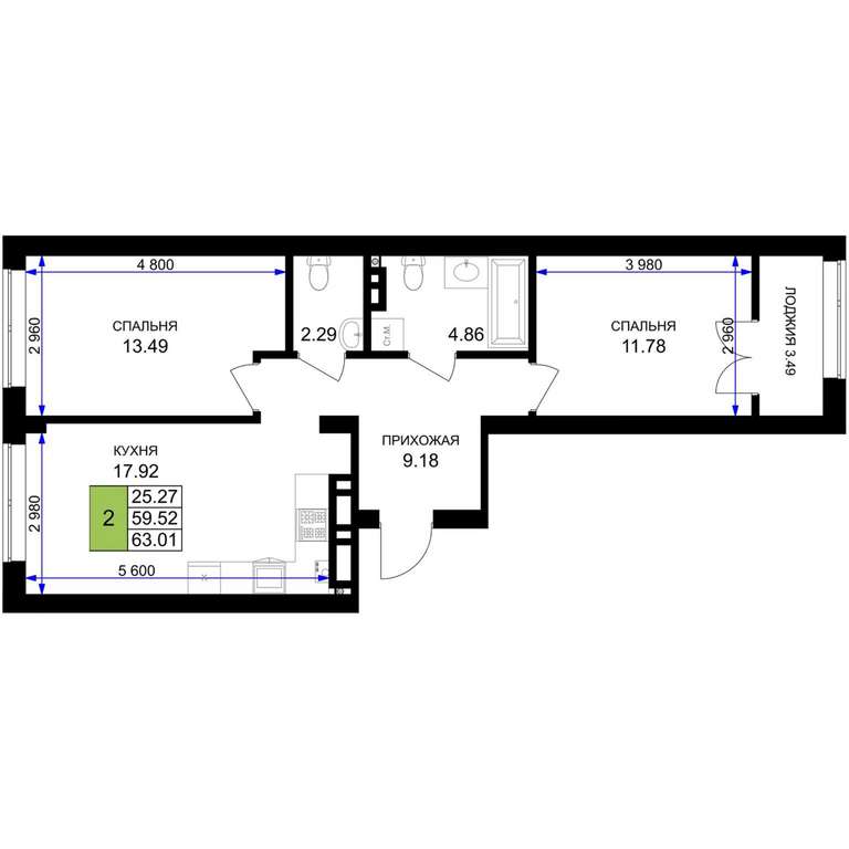 Продается 2-комн. квартира, площадью 63.01 м2 в монолитно-кирпичной новостройке. Возможен вариант покупки с использованием ипотечных средств, есть рассрочка, возможна покупка с использованием материнского капитала, есть военная ипотека.