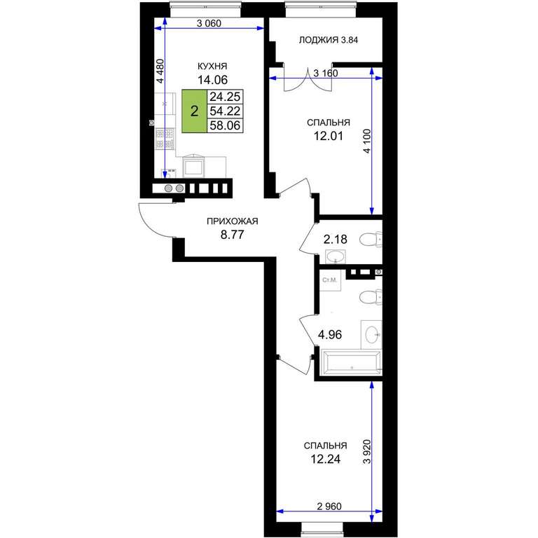 - 58.06 м2
