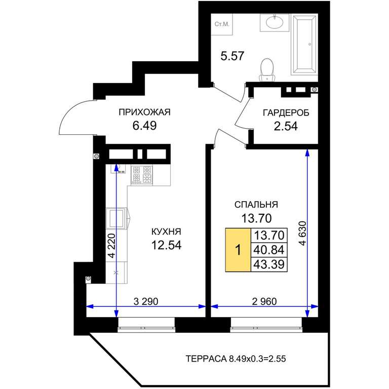 Продается 1-комн. квартира, площадью 43.39 м2 в монолитно-кирпичной новостройке. Возможен вариант покупки с использованием ипотечных средств, есть рассрочка, возможна покупка с использованием материнского капитала, есть военная ипотека.