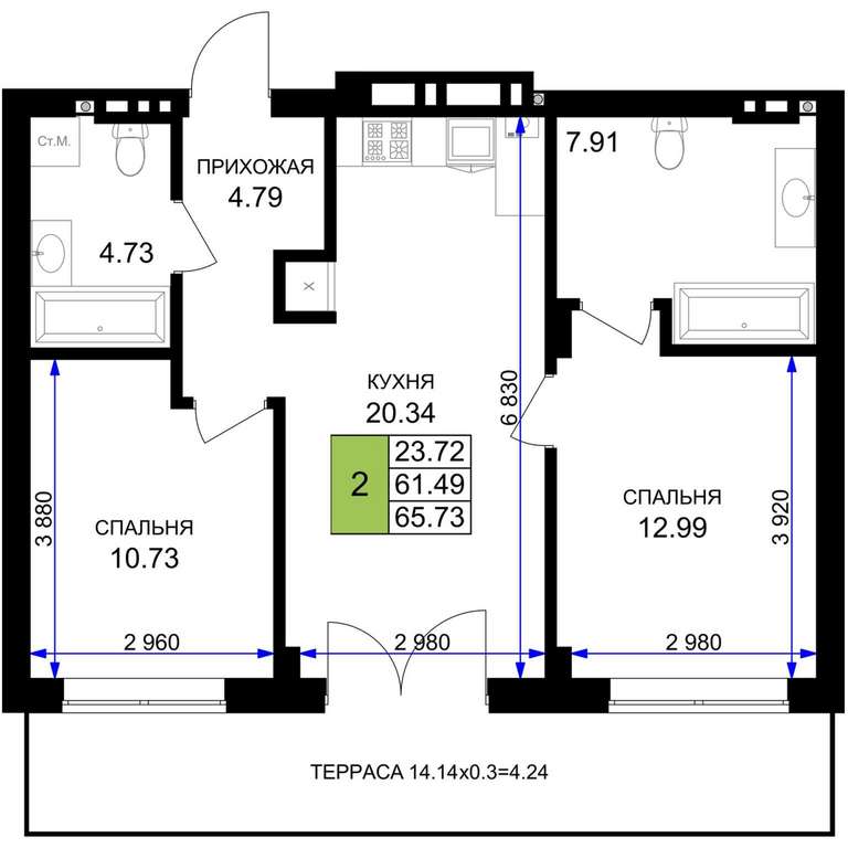 Продается 2-комн. квартира, площадью 65.73 м2 в монолитно-кирпичной новостройке. Возможен вариант покупки с использованием ипотечных средств, есть рассрочка, возможна покупка с использованием материнского капитала, есть военная ипотека.