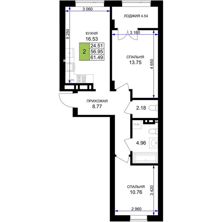 - 61.49 м2