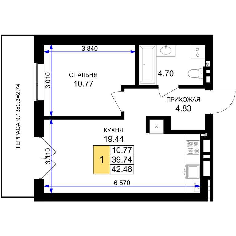 Продается 1-комн. квартира, площадью 42.48 м2 в монолитно-кирпичной новостройке. Возможен вариант покупки с использованием ипотечных средств, есть рассрочка, возможна покупка с использованием материнского капитала, есть военная ипотека.