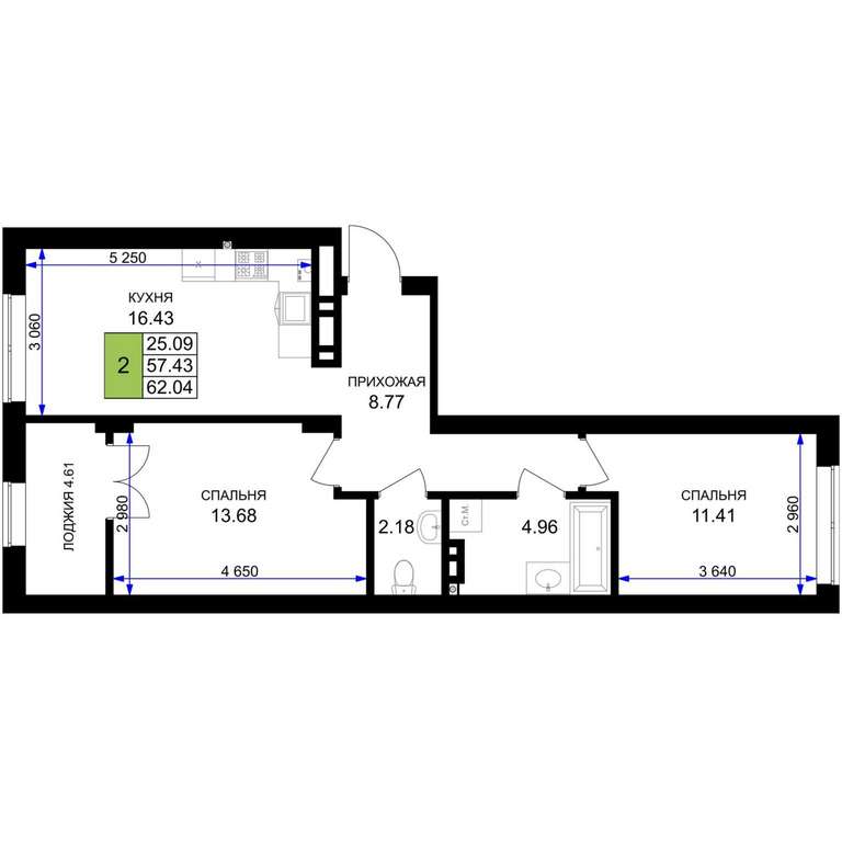 - 62.04 м2