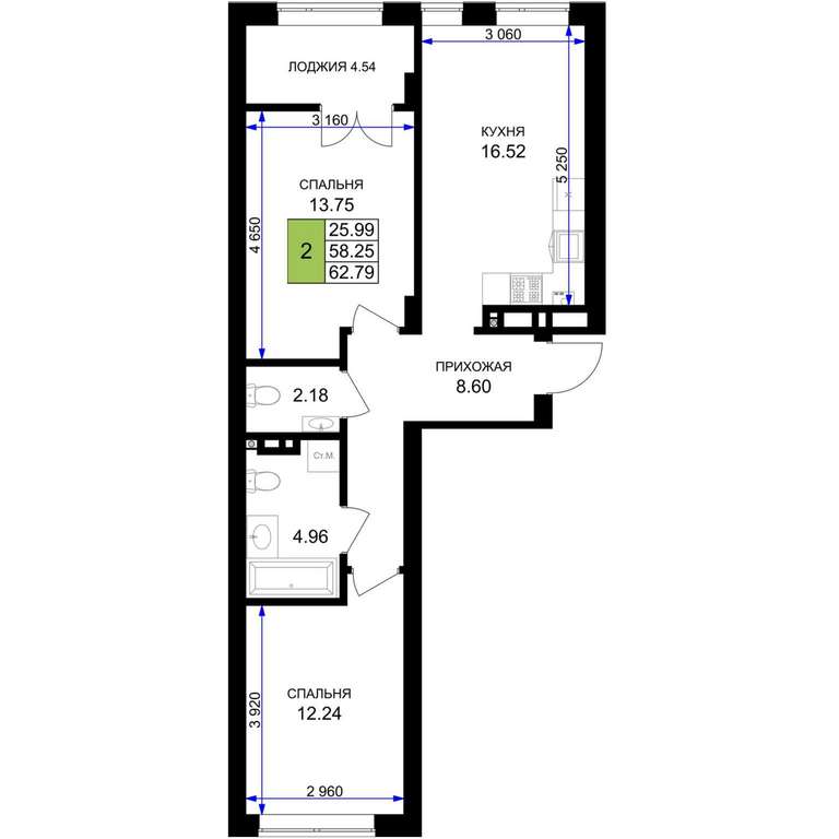 - 62.79 м2