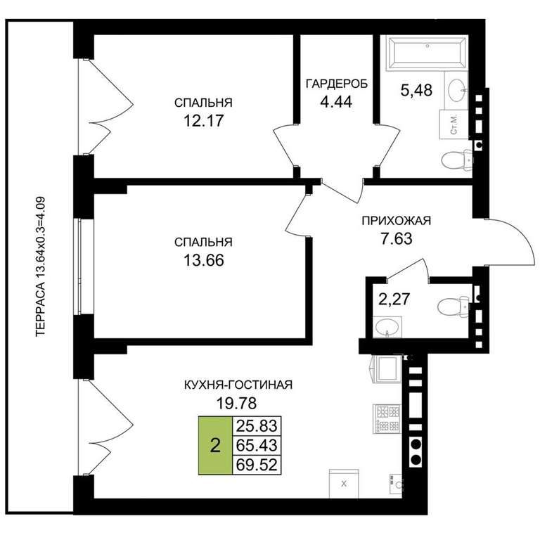 Продается 2-комн. квартира, площадью 69.52 м2 в монолитно-кирпичной новостройке. Возможен вариант покупки с использованием ипотечных средств, есть рассрочка, возможна покупка с использованием материнского капитала, есть военная ипотека.