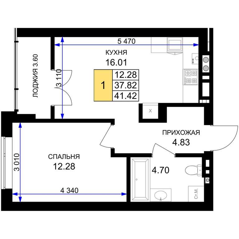 Жилая площадь 12.28 м2, кухня 16.01 м2, предчистовая отделка, комнаты изолированные.