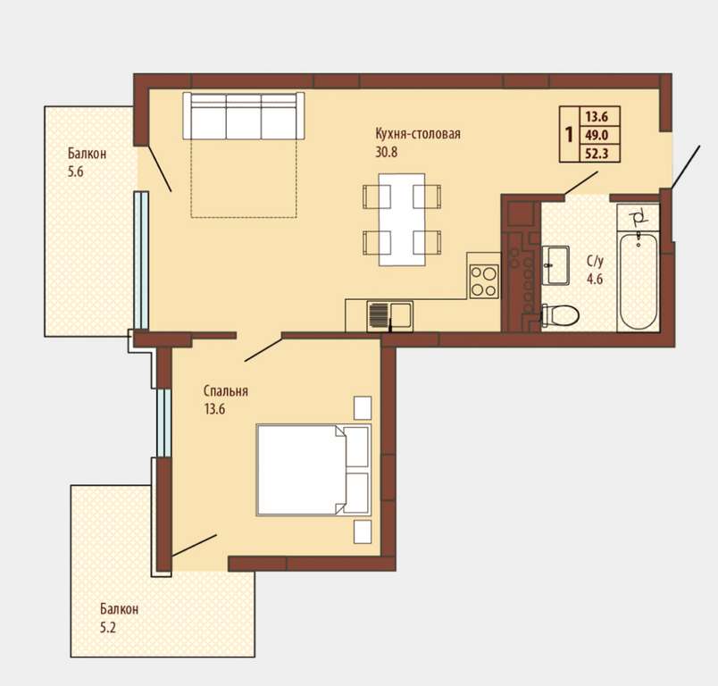 Продается 1-комн. квартира с европланировкой, площадью 54 м2 в монолитно-кирпичной новостройке. Возможен вариант покупки с использованием ипотечных средств, есть рассрочка, возможна покупка с использованием материнского капитала, есть военная ипотека.