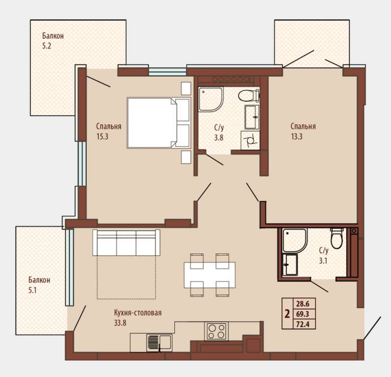 Продается 2-комн. квартира с европланировкой, площадью 74 м2 в монолитно-кирпичной новостройке. Возможен вариант покупки с использованием ипотечных средств, есть рассрочка, возможна покупка с использованием материнского капитала, есть военная ипотека.