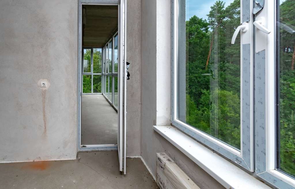 - лоджия с панорамным остеклением и балкон с видом на сосны