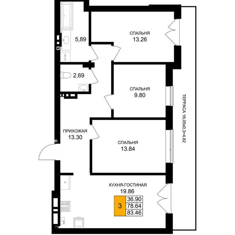 Продается 3-комн. квартира, площадью 84.1 м2 в монолитно-кирпичной новостройке. Возможен вариант покупки с использованием ипотечных средств, есть рассрочка, возможна покупка с использованием материнского капитала, есть военная ипотека.
