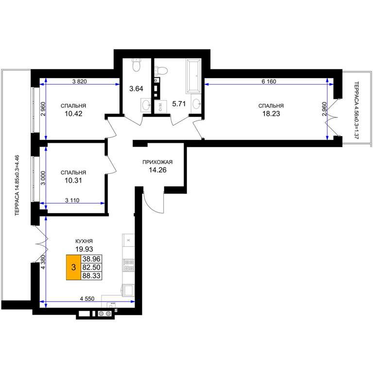 - 88.33 м2