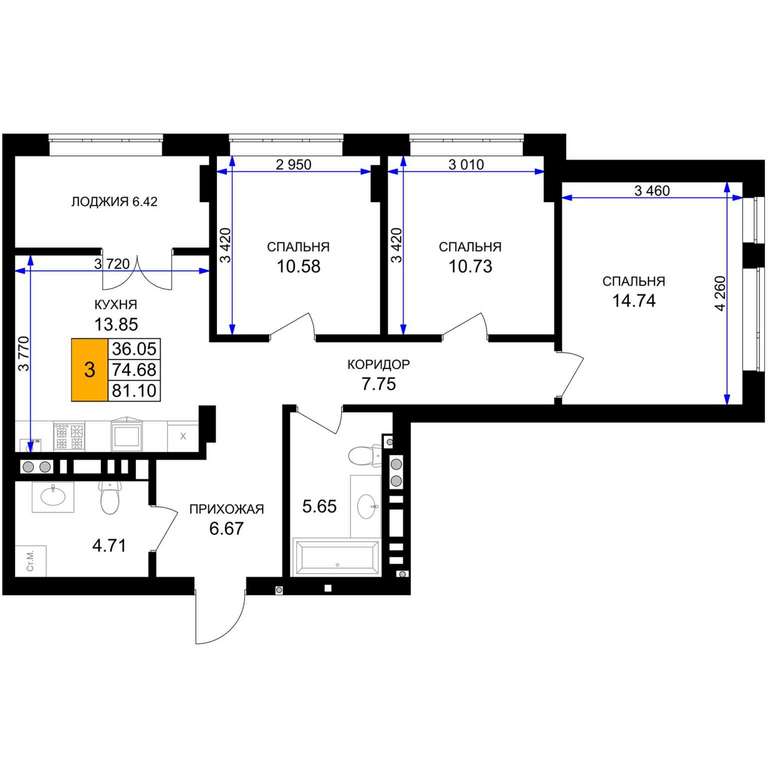 Продается 3-комн. квартира, площадью 78.82 м2 в монолитно-кирпичной новостройке. Возможен вариант покупки с использованием ипотечных средств, есть рассрочка, возможна покупка с использованием материнского капитала, есть военная ипотека.