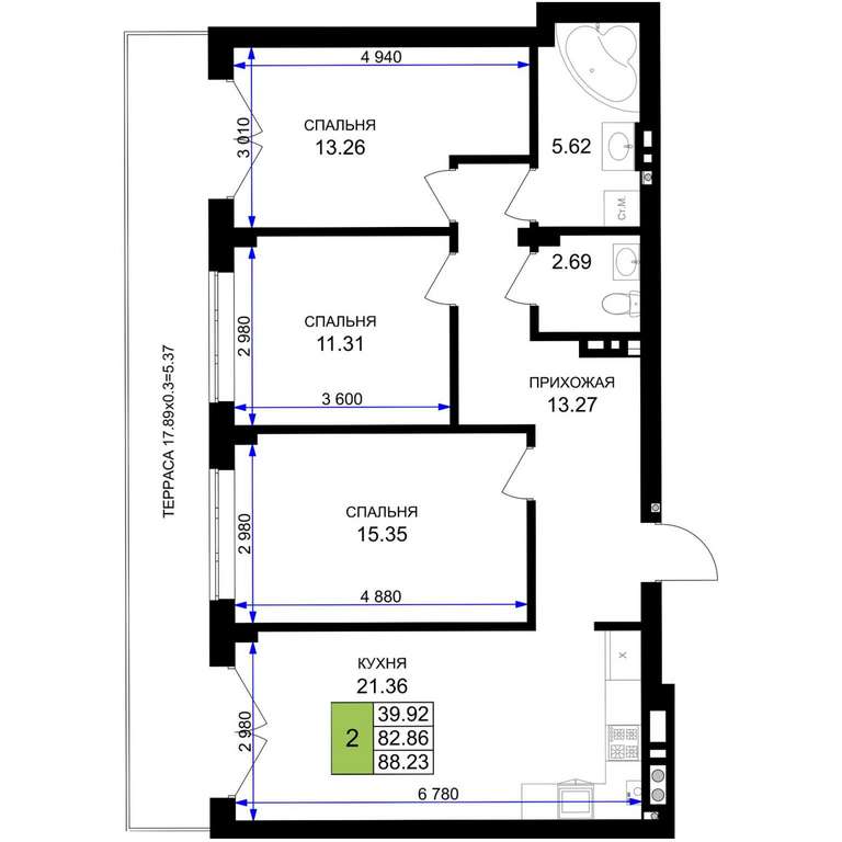 - 88.23 м2
