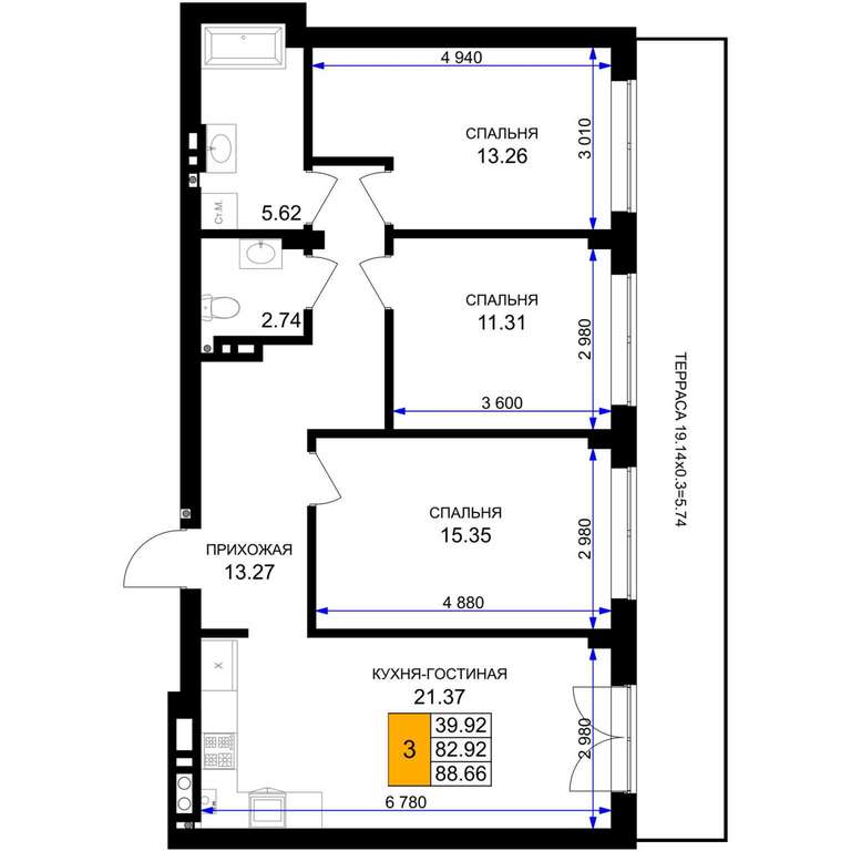 Продается 3-комн. квартира, площадью 88.48 м2 в монолитно-кирпичной новостройке. Возможен вариант покупки с использованием ипотечных средств, есть рассрочка, возможна покупка с использованием материнского капитала, есть военная ипотека.