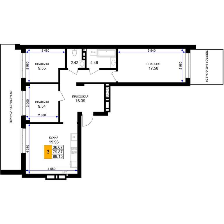 - 88.15 м2