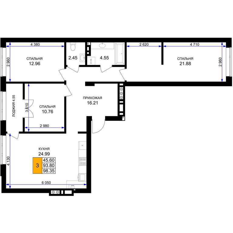 Продается 3-комн. квартира, площадью 96.08 м2 в монолитно-кирпичной новостройке. Возможен вариант покупки с использованием ипотечных средств, есть рассрочка, возможна покупка с использованием материнского капитала, есть военная ипотека.