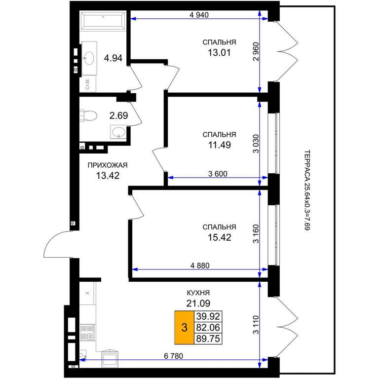 Продается 3-комн. квартира, площадью 89.51 м2 в монолитно-кирпичной новостройке. Возможен вариант покупки с использованием ипотечных средств, есть рассрочка, возможна покупка с использованием материнского капитала, есть военная ипотека.