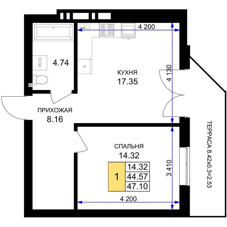 Продается 1-комн. квартира, площадью 47.1 м2 в монолитно-кирпичной новостройке. Возможен вариант покупки с использованием ипотечных средств, есть рассрочка, возможна покупка с использованием материнского капитала, есть военная ипотека.