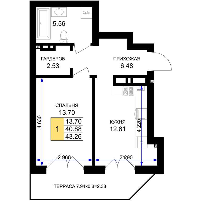 - 43.26 м2