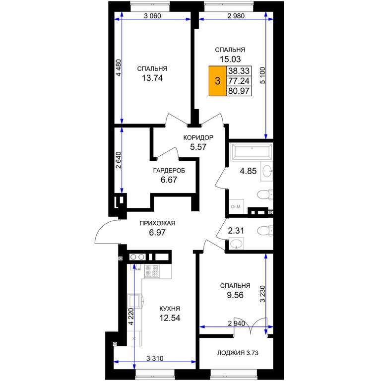 Продается 3-комн. квартира, площадью 79.23 м2 в монолитно-кирпичной новостройке. Возможен вариант покупки с использованием ипотечных средств, есть рассрочка, возможна покупка с использованием материнского капитала, есть военная ипотека.