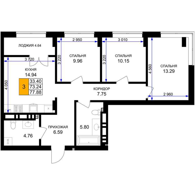 Продается 3-комн. квартира, площадью 75.56 м2 в монолитно-кирпичной новостройке. Возможен вариант покупки с использованием ипотечных средств, есть рассрочка, возможна покупка с использованием материнского капитала, есть военная ипотека.