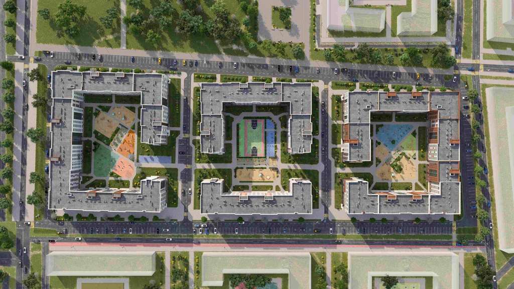 На территории комплекса есть всё для активного образа жизни: современные ворк-аут зоны и спортивные площадки для коллективных видов спорта.