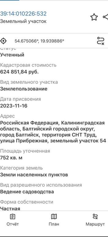 - Статус участка